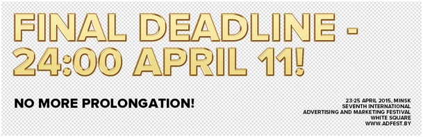 11 апреля, ровно в 24.00, завершится прием конкурсных работ на VII Международный Фестиваль маркетинга и рекламы «Белый Квадрат». БОЛЬШЕ ПРОДЛЕНИЯ DEADLINE НЕ БУДЕТ! На то, чтобы определиться, подготовиться и принять участие в Фестивале со своими лучшими кейсами, осталось 5 дней! Но успеть еще реально! Загружайте работы прямо сейчас!