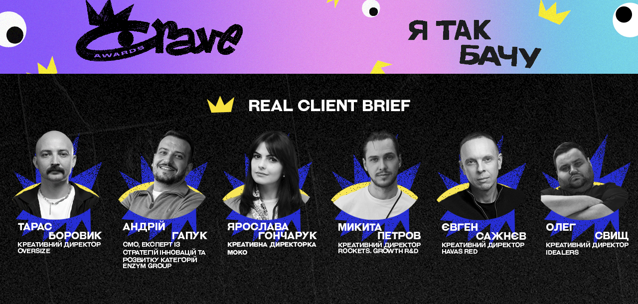 До складу журі увійшли 18 провідних креативників, експертів індустрії та представників клієнтів, які оберуть найсильніші ідеї та рішення. Для молодих креативників і тих, хто лише мріє увійти в індустрію реклами, CRAVE Awards – це унікальна точка входу у професію, де оцінюються ваші ідеї, а не досвід.