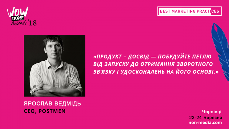 24 березня Ярослав Ведмідь, CEO postmen розкаже про те, чому продукти та сайти ніколи не будуть фінальними на конференції Best Marketing Practices. Оформити акредитацію на фестиваль можна до 16 березня включно. Часу обмаль!