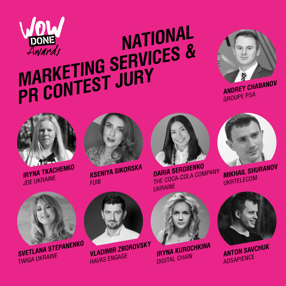 Міжнародний фестиваль маркетингових та PR комунікацій WOW DONE AWARDS 2020 анонсує три команди журі: журі дисциплін маркетингових і PR комунікацій, журі індустріальних категорій та журі національного конкурсу маркетингових сервісів та PR.