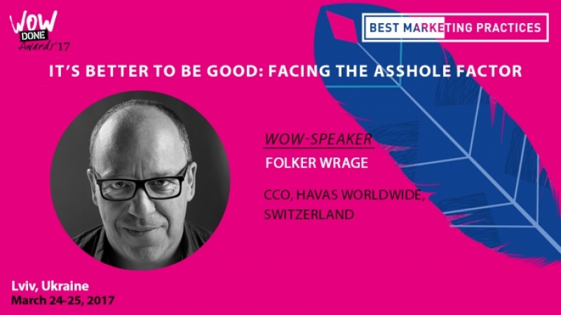 Folker Wrage, Голова журі Вертикалі маркетингових дисциплін WOW DONE AWARDS 2017, CCO в Havas Worldwide, виступить з темою "It’s better to be good: Facing the asshole factor" на конференції Best Marketing Practices, яка пройде 24-25 березня у Львові.