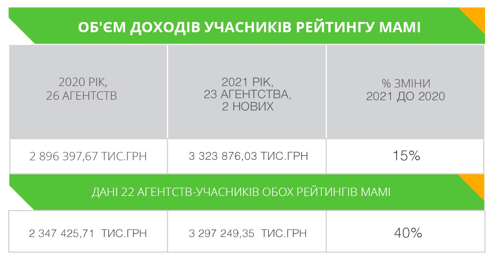 Назва агентства | % МС | Динаміка зміни доходу в порівнянні з 2020р. |