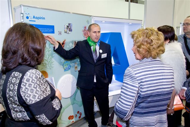 Посещая выставку, можно будет принять участие в викторине на тему борьбы с насекомыми-вредителями и сорняками с помощью продукции «Байер», или вставить правильные «кирпичики» в ДНК пшеницы для того, чтобы заблокировать ген стресса у растения и сделать его более устойчивым к внешним факторам. Буква «C» означает здоровье сердечно-сосудистой системы. Особое значение уделяется невероятной силе сердца, которое с каждым из 80 ударов в минуту перекачивает 200 миллилитров крови по нашему организму. Посетители могут поупражняться, сжимая маленький мяч. Таким образом, можно почувствовать, что даже для такого элементарного движения сердцу приходится совершать большие усилия.