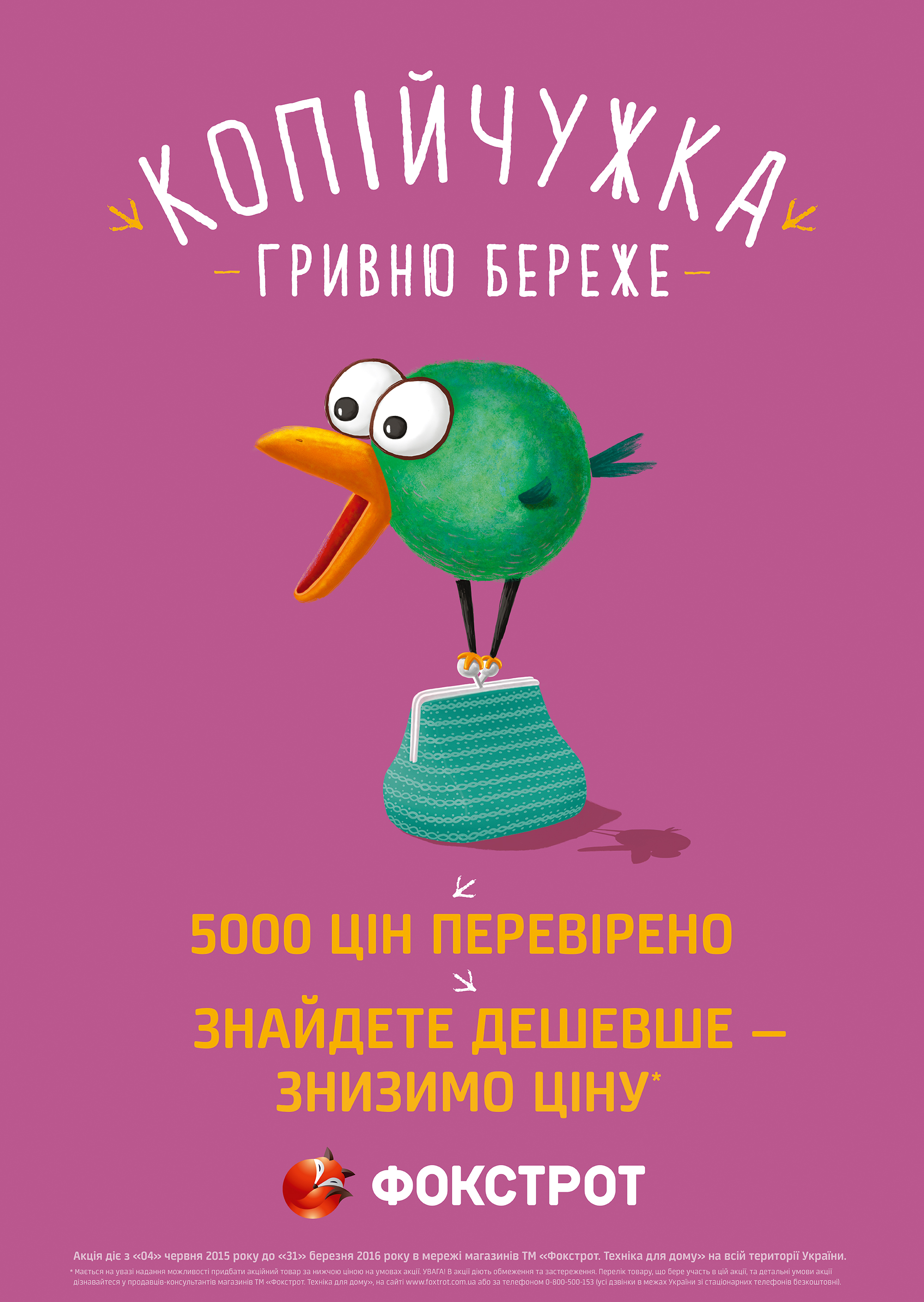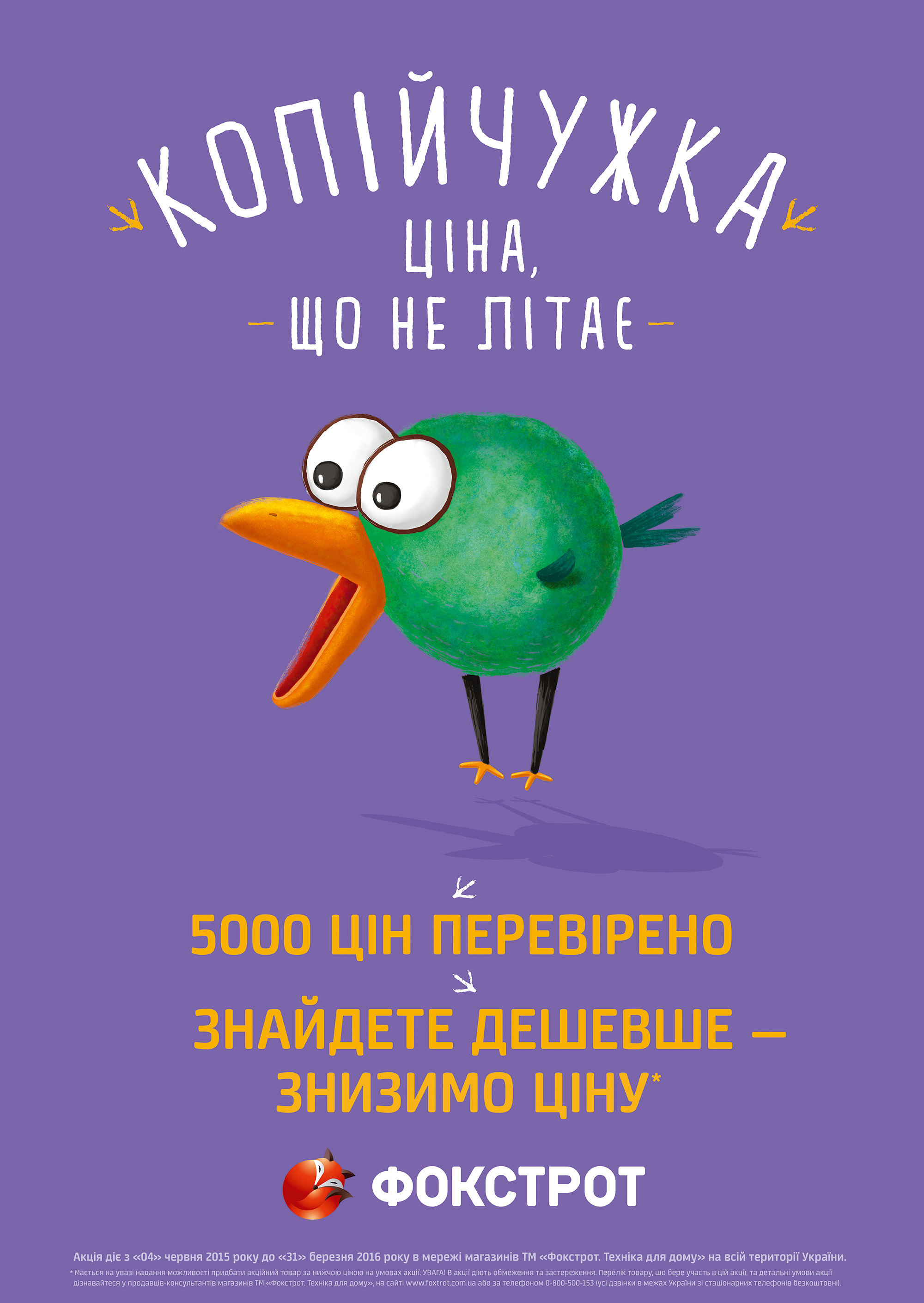 «Фокстрот» решил упростить этот сложный путь. В сети ежедневно проверяют цены на 5000 товаров, чтобы они были не дороже, чем в других магазинах и на популярных интернет-сайтах*. Ценники с этими товарами отмечены символом программы защиты цен: птичкой - копийчужкой. Предложение действительно и для заказов через интернет-магазин foxtrot.com.ua.