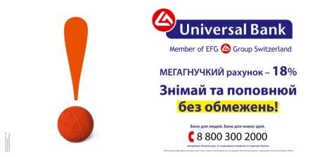 В марте 2009 года Universal Bank запустил рекламную кампанию по продвижению своего наиболее популярного продукта «Мегагибкий счёт». Данный счёт является оптимальным способом приумножения денежных средств и обладает рядом преимуществ, среди них: свободный режим доступа к деньгам, выгодные процентные ставки, понятные и прозрачные условия, а также дополнительные услуги*, которые обеспечивают возможность работы со счетом дистанционно.