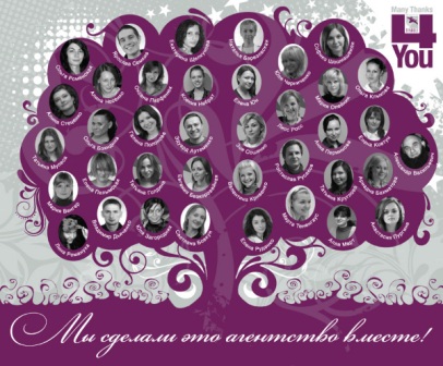 Идея празднования в этом году заключалась в том, чтобы найти и поблагодарить всех сотрудников, которые побывали членами команды Starget и вложили свой труд в развитие агентства. Акция символично называлась Many Thanks 4 You! Портреты абсолютно всех коллег украсили «фамильное древо», и каждому был приготовлен персональный подарок.