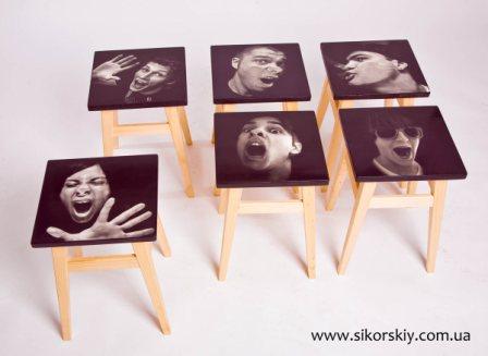 Гениально простая идея дизайна табуреток «Facing» заключается в нанесенных на их поверхность фотографий человеческих лиц, выражающих различные эмоции, и которые словно бы говорят садящемся на них «Не садитесь на нас, пожалуйста!». В результате получается так ценимый в современном искусстве разрыв шаблона.