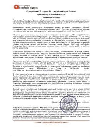 Официальное обращение Ассоциации ивенторов Украины к рекламному и event-сообществу