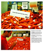Основная цель использования таких необычных POSM - напомнить покупателям об известных свойствах моркови, которая содержит каротин, полезный для глаз, и тем самым заставить их задуматься о своем зрении. Причем в сообщении подчеркивается тот факт, что специализированная клиника позаботится о зрении клиента лучше, чем любое народное средство.