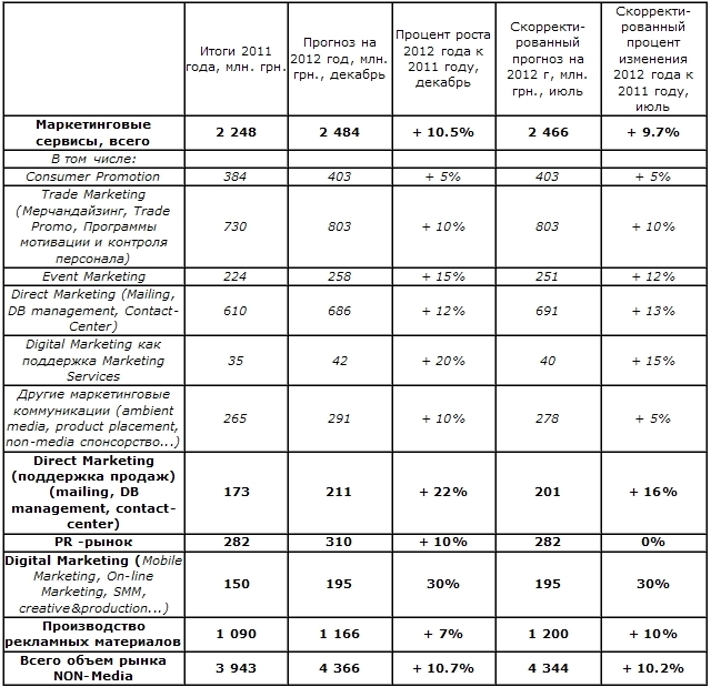 Экспертная оценка объемов NON Media части рекламно-коммуникационного рынка Украины 2012