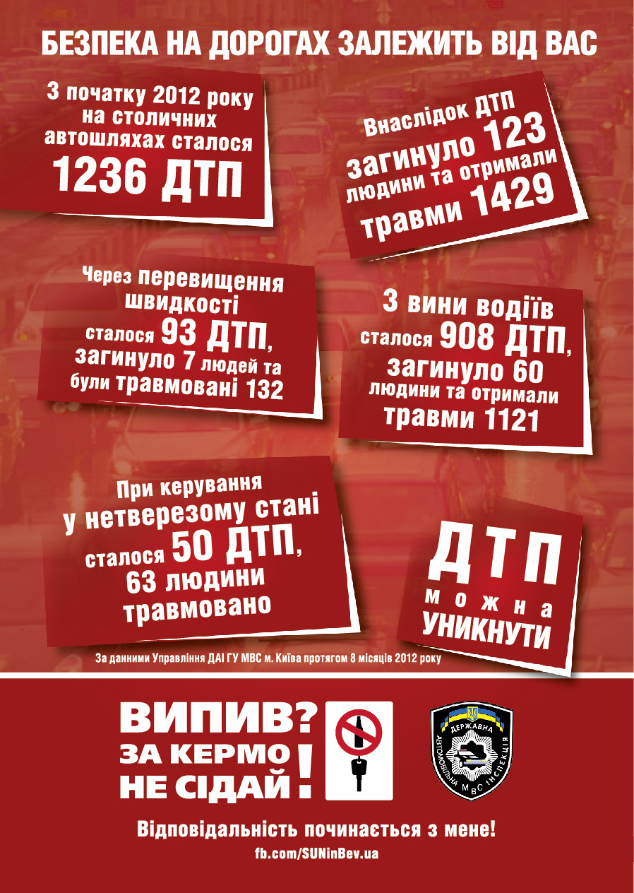 Программа «Випив? За кермо НЕ сідай!» - это единственный социально-ориентированный проект в Украине, который разработан и внедрен по принципу коммуникации 360° - полноценной коммуникационной кампании, которая используется в серьезных бизнес-проектах.