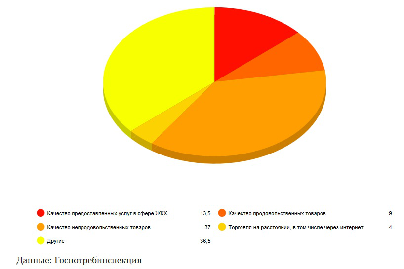 Структура жалоб, поступивших в Госпотребинспекцию, % от общего количества