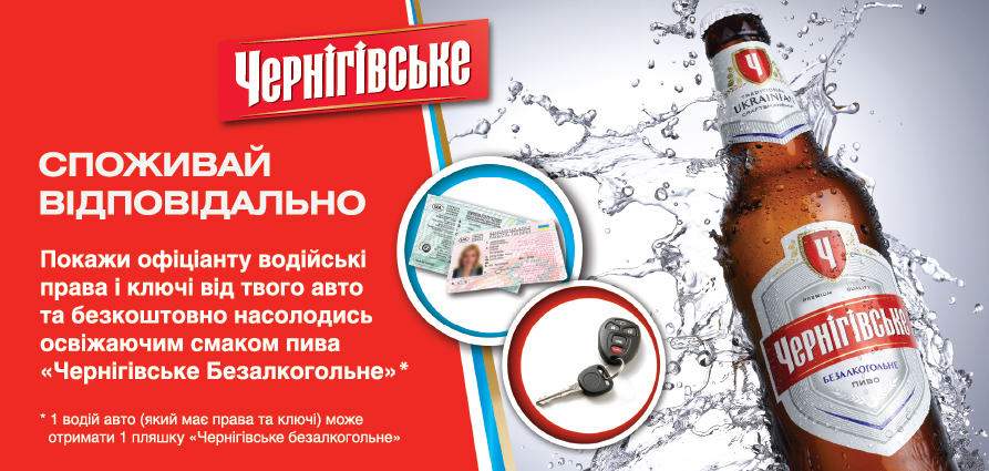 В Одессе, в городе тусовок и ресторанов, была реализована акция совместно с заведениями HoReCa. Данный канал является «моментом истины» для водителя, поскольку именно тут обычно принимается решение «пить или не пить». Именно поэтому была реализована следующая механика: по предъявлении официанту водительских прав и ключей от машины, водитель мог бесплатно насладиться «Черниговским безалкогольным».