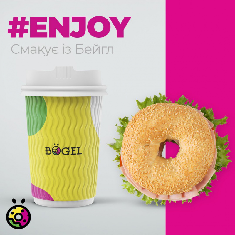 Назва – це гра слів, асоціацій та “пасхалка” на нью-йоркські бейгли. Логотип мінімалістичний, яскравий, сучасний, запам’ятовується та створює настрій. Крім того, ми помістили лого на стікер-наклейку, що наразі прикрашає десятки лептопів.