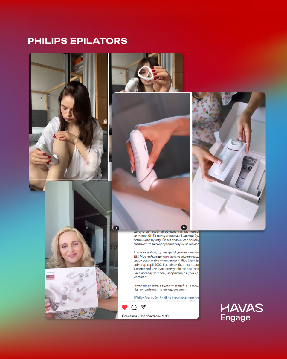 Кампанія Philips Epilators об’єднала блогерів із різним охопленням — від 27K до 863K підписників, що дозволило протестувати ефективність як мікро-, так і макроінфлюенсерів. Завдяки продуманому брифу та органічній подачі контенту кампанія зібрала 1,6 млн переглядів, доводячи, що якість інтеграції важливіша за кількість підписників. (фото 6)
