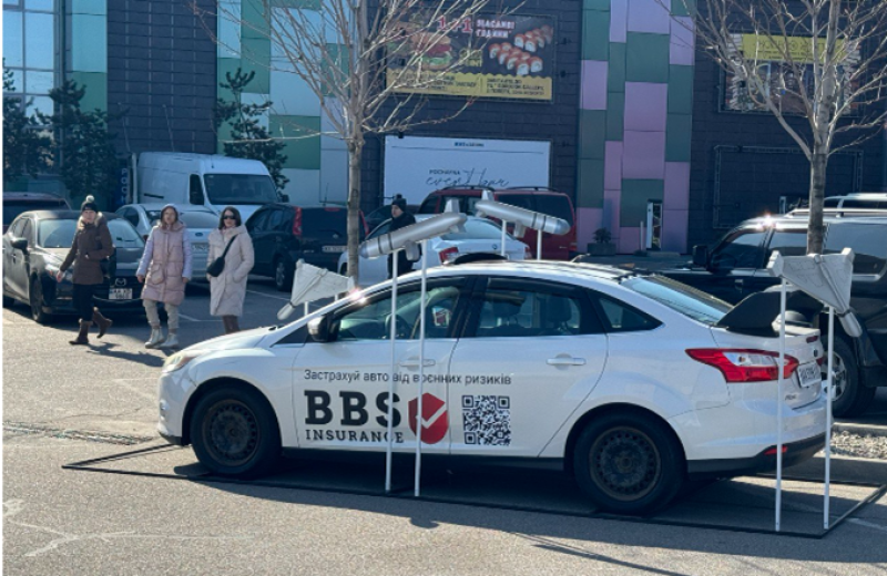 8 березня в соцмережах почали поширюватись фото автівки, яку облітають іграшкові ракети. Саме така фотозона була встановлена агенцією Mex a member of HAVAS разом зі страховою компанією BBS INSURANCE. Мета: привернути увагу до важливості послуги страхування під час війни.