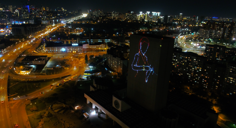 Загальна висота лазерної проєкції сягала 27 поверхів. Основний меседж акції – світловідбивачі знижують ризик потрапити в аварію.