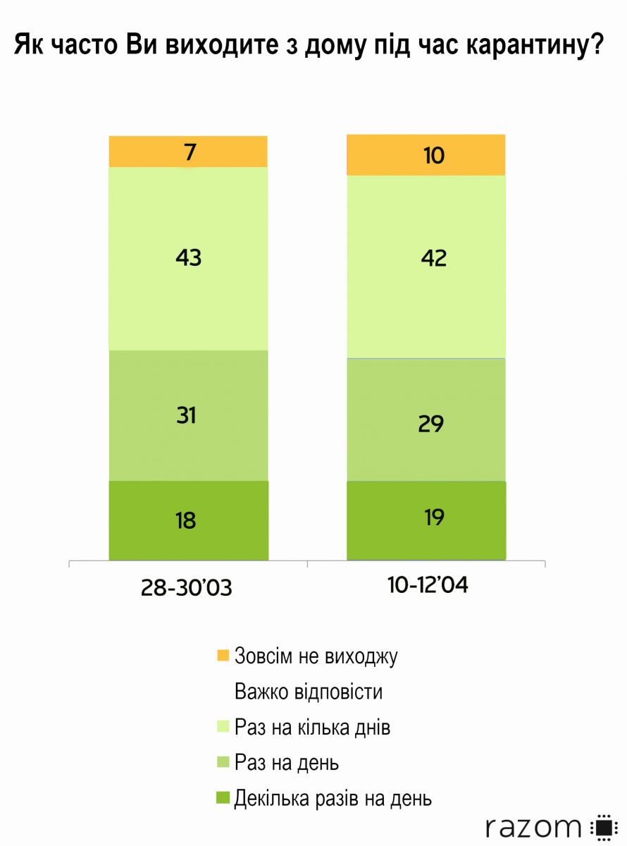 социологической группы "Рейтинг" 48% населения Украины выходят из дома минимум 1 раз в день, еще 42% - один раз в пару дней.