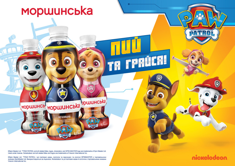 У 2020 році «Моршинська» ще раз нагадує: пити природну воду не тільки корисно, але й цікаво! Особливо з новою лінійкою пляшок-іграшок «Щенячий патруль». Вже у червні на полицях магазинів улюблені персонажі знакового мультсеріалу будуть чекати на своїх друзів.