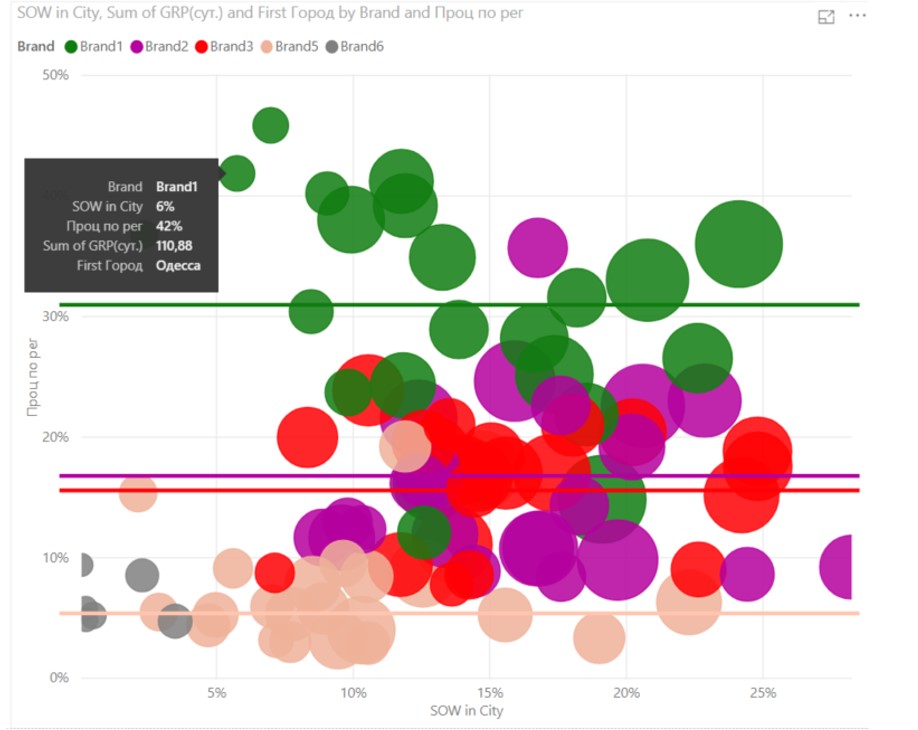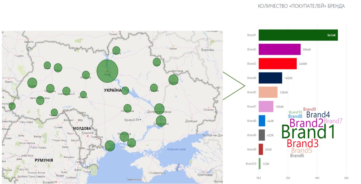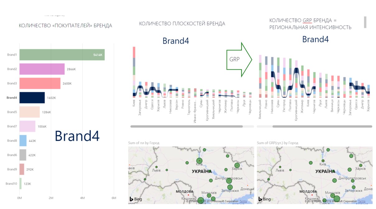 Удалось проанализировать влияние наружной рекламы и региональных стратегий для 10 брендов с кампаниями по всей Украине в каждом значимом населенном пункте с выборкой более 18 млн человек. Даже самый «нишевый» бренд, который представлен в исследовании, имел достаточное количество «покупателей», которое насчитывало 100 тыс. человек.