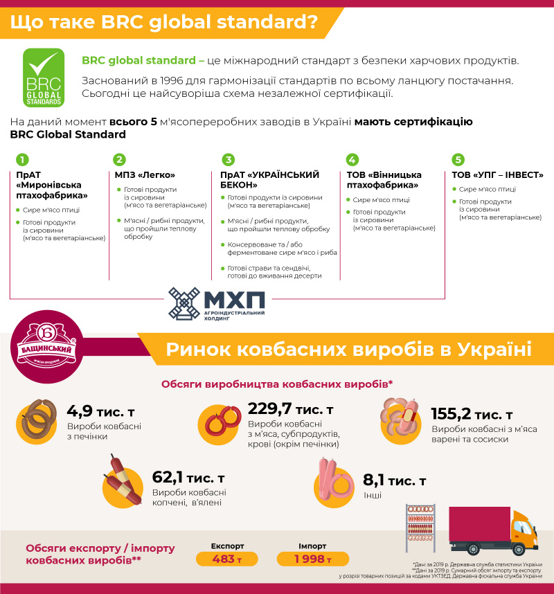 ЧАО «УКРАИНСКИЙ БЕКОН», которое производит мясные изделия ТМ «Бащинский», получило сертификат соответствия внедренных процессов и мощного производства требованиям международного стандарта безопасности пищевых продуктов ВRC Global Standard.