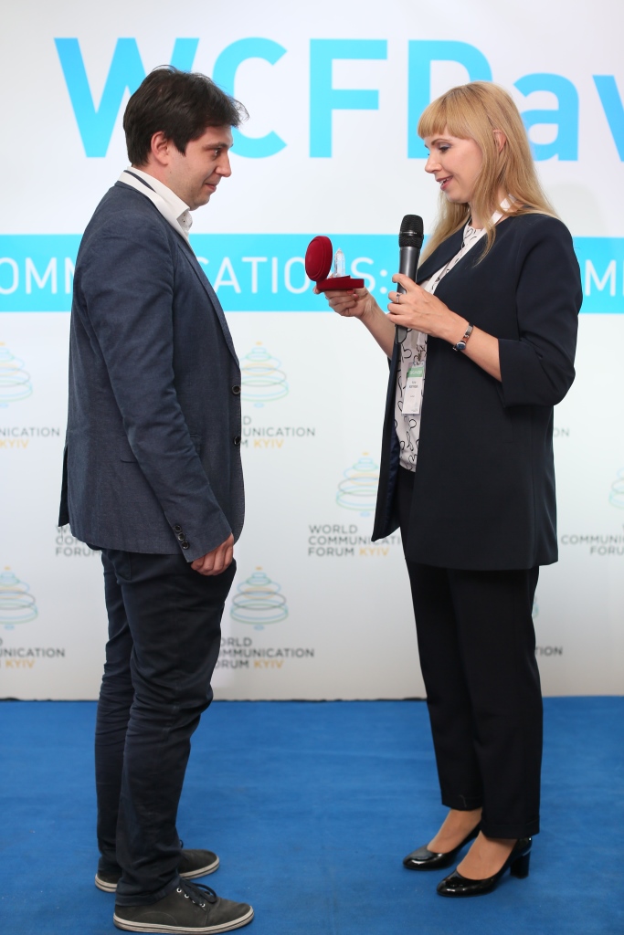 Коммуникации будущего: Максим Перов (оргкомитет награды), Ирина Золотаревич (член глобального комитета WCFDavos и эксклюзивного представителя WCFDavos в Украине, директора PR&GR сервисов AGAMA communications), Сергей Макаренко (директор по связям с органами власти и общественностью PepsiCo в Украине), Ольга Кудиненко (обладательница награды Relations of the Future за благотворительный проект «Таблеточки»), Максим Яковер (обладатель награды Idea of the Future за создание креативного пространства «Часопис»), Катерина Венжик (обладательница награды Trust of the Future, главный редактор портала «Дело.ua»), Ирина Новаикова (СЕО AGAMA сommunications).