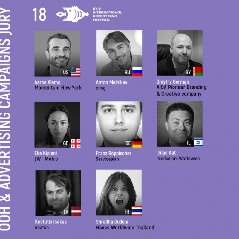 Оргкомітет 18-го Київського Міжнародного Фестивалю Реклами радий представити імена перших членів журі. Команда, яка складається з визнаних міжнародних експертів креативної індустрії, оцінить роботи учасників конкурсів OUT OF HOME і ADVERTISING CAMPAIGNS. Досвід і географія представників журі дуже різноманітні – неодноразові переможці міжнародних конкурсів, професіонали із США, Росії, Білорусі, Грузії, Німеччини, Ізраїлю, Латвії, Таїланду.