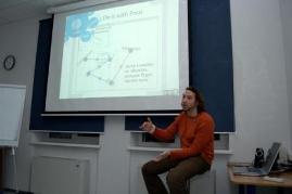 А Евгению Чупаку, дизайнеру впечатляющих презентаций, почти удалось убедить участников Клуба в том, что PowerPoint скоро уступить место новым инструментам. Sliderocketи Prezi – возможности этих он-лайн программ даже новичкам позволяют создавать интерактивные презентации с видео, аудио и др.. Более того, делая презентации в Sliderocket, вы можете измерить статистику просмотра каждой ее страницы. В завершение выступления Евгений провел мастер класспо работе в программе Prezi, которой заворожил аудиторию. Уверены, большинство участников сразу же после заседания посетилисайты www.prezi.com и www.sliderocket.com.