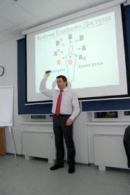 Владимир Поддубный подхватил тему эксперимента, и предложил маркетологам «прислушаться, присмотреться и вчувствоваться» в то, как они воспринимают информацию каждого слайда. Опытный специалист в НПЛ вооружил участников заседания двумя мощными психологическими техниками с загадочными названиями – ВАК и КГД, и продемонстрировал, как благодаря этим техникам повысить читаемость и запоминаемость информации до 95%. А при необходимости даже ввести вашу аудиторию в позитивный транс. Владимир, собственно, использовал все приемы в своем выступлении – и участники его действительно не просто слушали, а внимали.