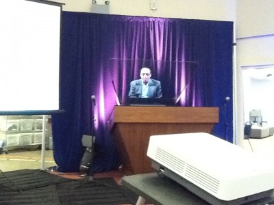 С Рэем нас познакомили через Телепортек - проще говоря, голограмму. И это было не просто его видеоотображение, а реальное присутствие в общении, то есть в живом времени. Качество голограммы потрясающее, проекция идет на пластиковый "ворот" трибуны, он видит нас по свою сторону, отвечает на вопросы. Основная мысль выступления - все поменяется не просто быстро, а очень быстро: за 30 лет мы пройдем то, что раньше человечество проходило за века (exponential growth), первая декада принадлежит биотехнологиям, потом будет активно развиваться искусственный интеллект.