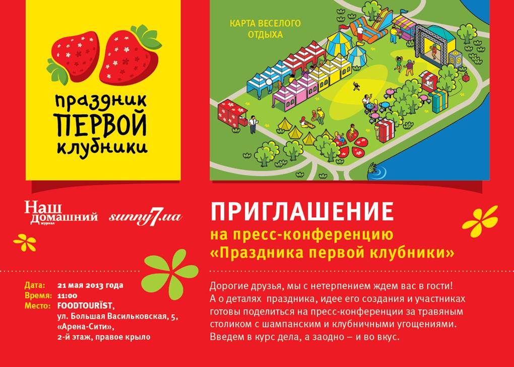 Будем рады видеть Вас на пресс-конференции по случаю проведения «Праздника первой клубники», которая состоится 21 мая в 11:00 в баре FOODTOURЇST.