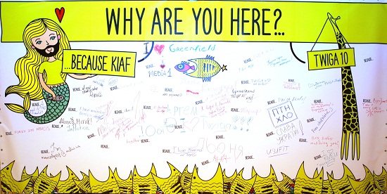 Судя по автографам на баннере «Why are you here?», гости КМФР’15 прибыли на церемонию с такими основными целями: 1) because любят рекламу и хотят заполучить долгожданную тарелку; 2) because пришли пропиарить свою компанию на том же баннере; 3) because больше негде высказать свои политические предпочтения, используя современные способы нецензурной аббревиации; 4) because TWIGA Ukraine отмечает 10 лет!