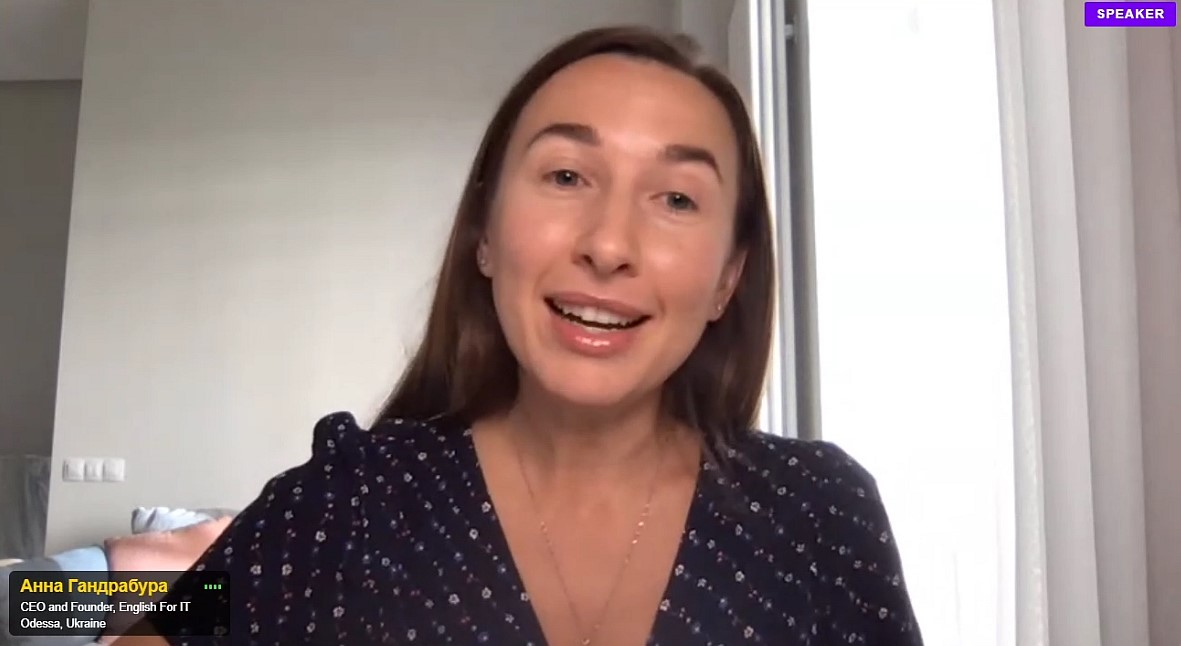За опитуванням, яке організатори провели перед самітом, третина IT та Digital-фахівців жваво цікавиться тим, як підвищити рівень профільної англійської та як нею доречно користуватись на співбесідах. Саме про це і розповіла Анна у своїй доповіді. «English для IT-спеціалістів — це вже не Soft Skills, це — обов'язкова вимога. Навіть Hard Skills» — підкреслила Анна. У доповіді вона розповіла, що бути «непомітним співробітником» через страх показати незнання мови — це вкрай небезпечно для кар'єри. «Пам'ятайте: ваші помилки турбують лише вас» — заспокоїла вона тих, хто боїться поставити не той артикль або не знає Perfect Tense.