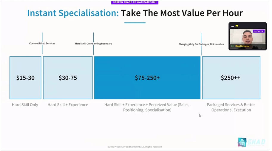 Розпочав захід співзасновник та СЕО "Make it in Ukraine" — стартапу, який синхронізує підприємців і менеджерів з усього світу з талановитими професіоналами України. Його влучна англомовна доповідь розкрила 5 ключових кроків концепції Perceived Value (усвідомленої цінності). Спікер докладно розібрав, як заробляти в 5 разів більше, працюючи віддалено. Для цього потрібно 5 кроків: