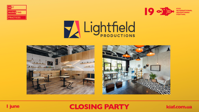 1 червня, після урочистої Церемонії нагородження переможців, відбудеться вечірка закриття 19-ого Київського Міжнародного Фестивалю Реклами під назвою «Рекламіст – друг людини» в фотостудії Lightfield Productions.