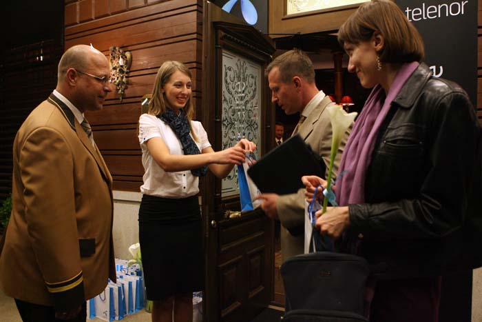В конце мероприятия каждому гостю были вручены памятные подарки - серебряные запонки и подвески в форме логотипа компании Telenor.