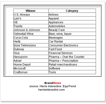 Исследовательская компания Harris Interactive опубликовала итоги ежегодного рейтинга брендов EquiTrend, который составляется на протяжении более 20 лет.
