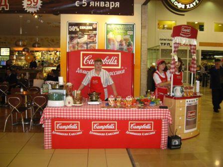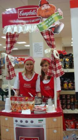 Команды прекрасных хозяюшек в красных сарафанах Campbell’s предлагают всем желающим продегустировать вкусные бульоны. Помимо этого, они раздают посетителям кулинарные книги и листовки с оригинальными рецептами супов на основе «Campbell’s Домашняя Классика», а также - магниты.
