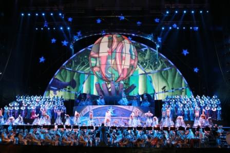 Всего в постановке приняли участие 450 актеров, музыкантов, певцов. И все это на крупнейшей в Украине сцене высотой с девятиэтажный дом с лучшим осветительным оборудованием и самыми зрелищными спецэффектами из Великобритании и Франции.