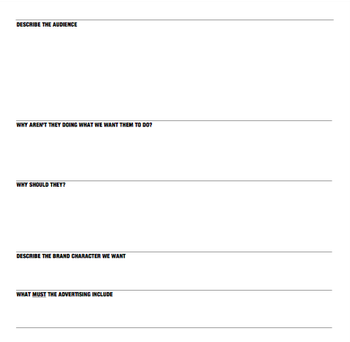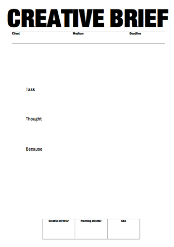 Бриф сети M&C Saatchi соответствует философии предельной простоты и «одного слова». Задача, мысль, потому что. Всё. И только на обратной стороне бланка задачу можно описать подробней.