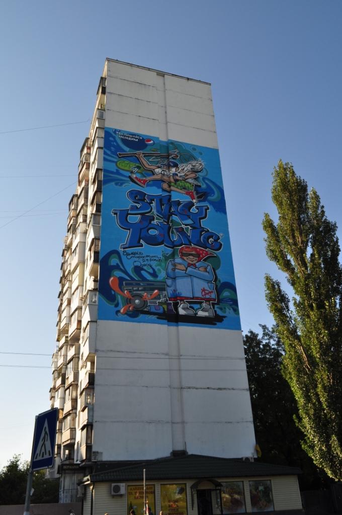 1 сентября на торце 16-этажного дома, появилось самое большое и грандиозное граффити Киева. Рисунок занял площадь 300 м² и отображает философию бренда Pepsi – «Refresh yourself». Команда FULL CONTACT создавала рисунок на протяжении 6 дней. Для того чтобы проект состоялся, агентству предстояло оформить множество разрешительных документов, получить письменные разрешения всех жильцов дома, а также пройти медицинскую комиссию для работы на высоте.