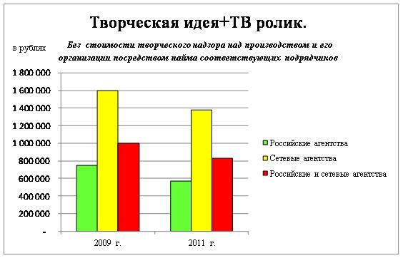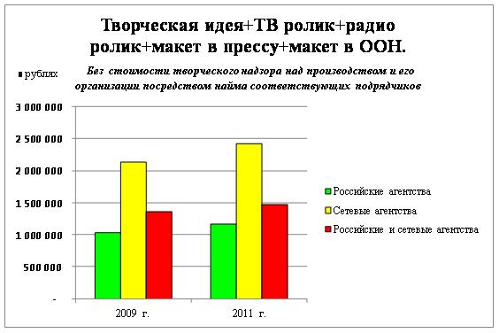В ходе исследования было выявлено, что при общем росте рынка на 20 %, рост цен на разработку полномасштабных кампаний составил около 8%. По мнению экспертов данный показатель пока отстает от совокупного уровня инфляции за последние 2 года. Более того, стоимость услуг по разработке материалов для отдельных каналов даже снизилась по сравнению с 2009 годом (снижение составило около 17%)