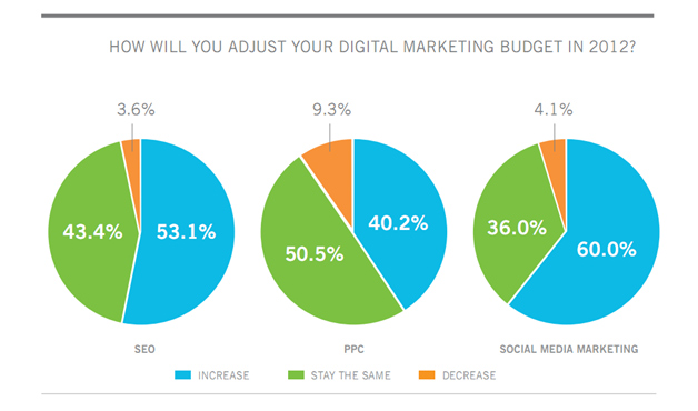 53,1% маркетологов, опрошенных в ходе исследования, заявили, что их расходы на SEOв 2012 году возрастут, у ещё 43,4% они останутся на прежнем уровне, а у 3,6% сократятся.