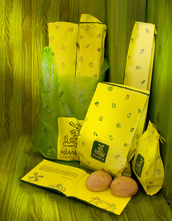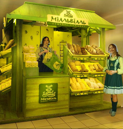 Не так давно появились у нас яркие зеленые отделы с красивыми, пахнущими, горячими хлебушками и милыми продавщицами. ТМ Милльвилль трудно не заметить. Стилистика жизнерадостная, привлекающая, цельная.