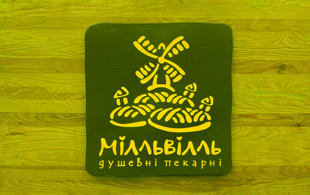 Логотип мы сделали в виде холмов, напоминающих хлебные батоны, которые вместе формируют ландшафт Милльвилля с мельницей.