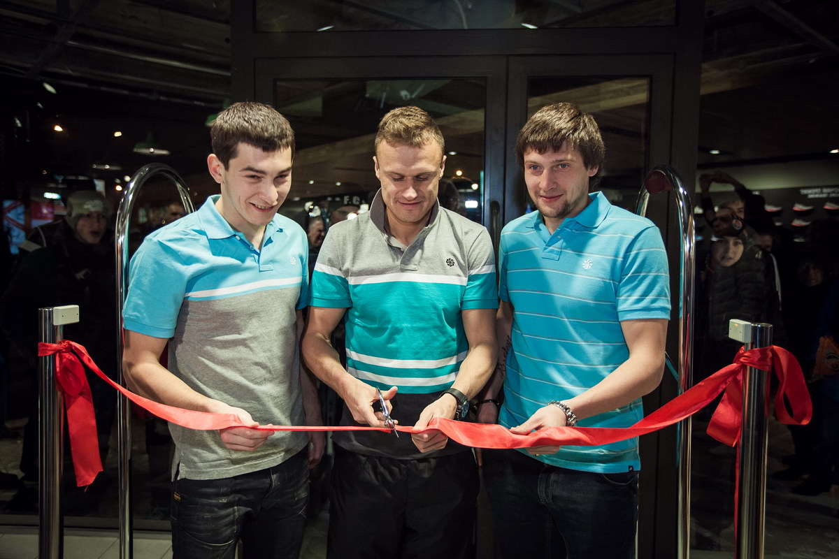 Символическую красную ленточку перерезали игроки ФК «Шахтер» - Тарас Степаненко, Вячеслав Шевчук и Евгений Селезнев, поздравив сотрудников и первых посетителей с началом работы.