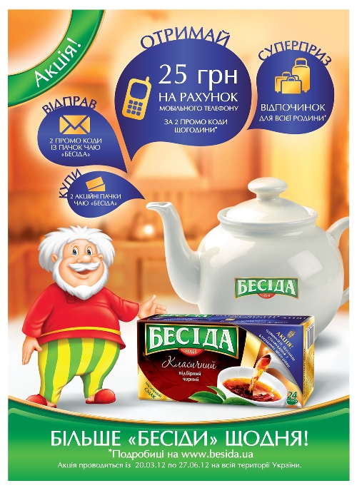 20 марта 2012 года стартовала национальная акция для любителей чая ТМ «БЕСІДА» - «Больше беседы каждый день!»