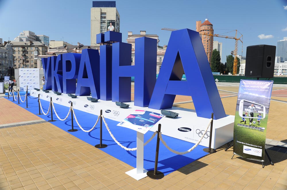 Киев, Украина – 27 июля 2012 года – Компания «Samsung Electronics Украина» объявляет о старте национальной кампании по поддержке Олимпийской сборной Украины. В рамках уникальной инициативы, в самом центре столицы, компанией установлен символ поддержки Национальной Олимпийской сборной украинцами – семь гигантских синих букв синего цвета, составляющих слово У.К.Р.А.Ї.Н.А.