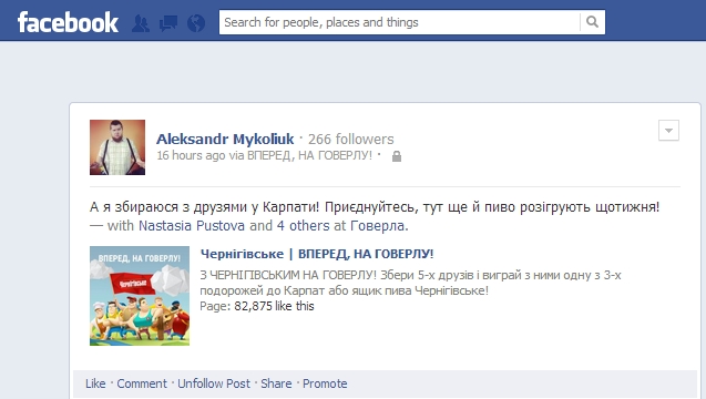 Пиво “Чернігівське” поведет своих Facebook-фанов на Говерлу