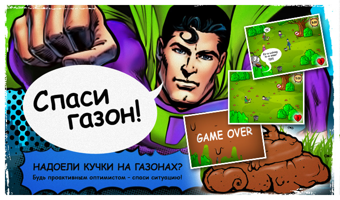 Проект «Спаси газон» включает в себя несколько активностей. Кроме рекламы на видеобордах, создана интерактивная игра в Facebook. Герой игры помогает владельцам собак позаботиться не только о своих питомцах, но и о чистоте газонов. Победитель виртуальной игры становится героем реальной рекламной кампании: его фото используется в видеоролике, который транслируется на 45 бордах по всему Киеву с призывом к цивилизованному решению проблемы.